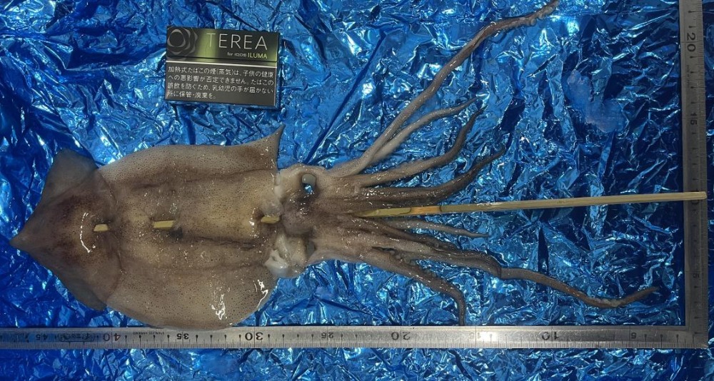 1匹豪快に45センチのジャンボ串に刺したゲソ付きイカ串イカを開いて刺してるので、ツボ抜きイカより早く焼き上げることが出来ます。焼き上げる際は、イカ串を一度自然解凍し焼き上げると、冷凍のまま焼き上げるより縮みは軽減されます。4枚目の画像のお店で提示する弊社で作成した価格表があります。データーで送らせていただきますので、申し付けてください。