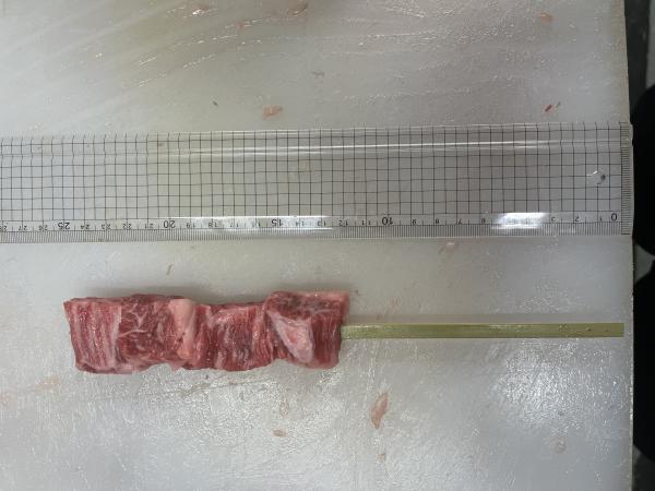 神戸牛のネック無しの肩ロースをを使用しています。霜降り神戸牛串
