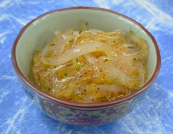 ・国産の白魚を使用 ・風味豊かな青じそ、色鮮やかな魚卵、 ゼラチン加工品と和え、サッパリとした 薄味醤油仕立ての一品