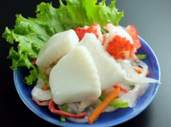 新鮮なチリとペルー産のいかを使用した、贅沢な海鮮マリネ。