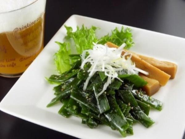 新鮮な茎わかめを使用したおつまみは、栄養豊富でヘルシーな一品です。