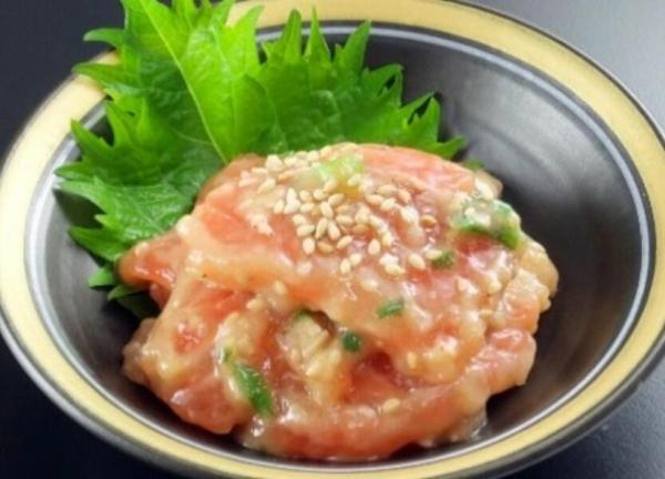 サーモンと相性の良い胡麻、ハナマルキの糀味噌、小ねぎと共に味をまとめました。 胡麻、味噌と 一緒に漬け込むことで、サーモンの旨味が引き立ち、 コク深い上品な味わいになります。白米や刻 みのりと一緒にお茶漬けにしても絶品です。 冷凍保存により、新鮮さを保ちながら手軽に楽しめます。