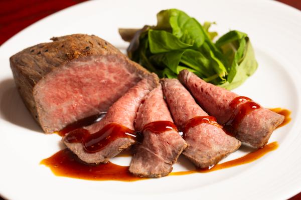 牛肉の美味しさを閉じ込め、しっとりジューシーに仕上げたローストビーフです。