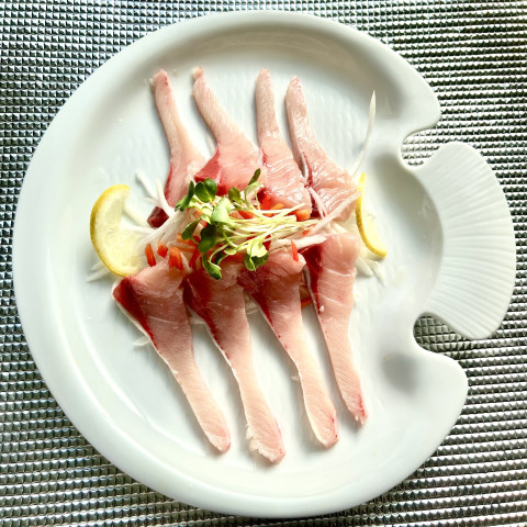そしてフィーレ加工された真空包装形態は、顧客の注文に合わせて、流水解凍し、刺身として斜めに切る作業で、即対応可能です。