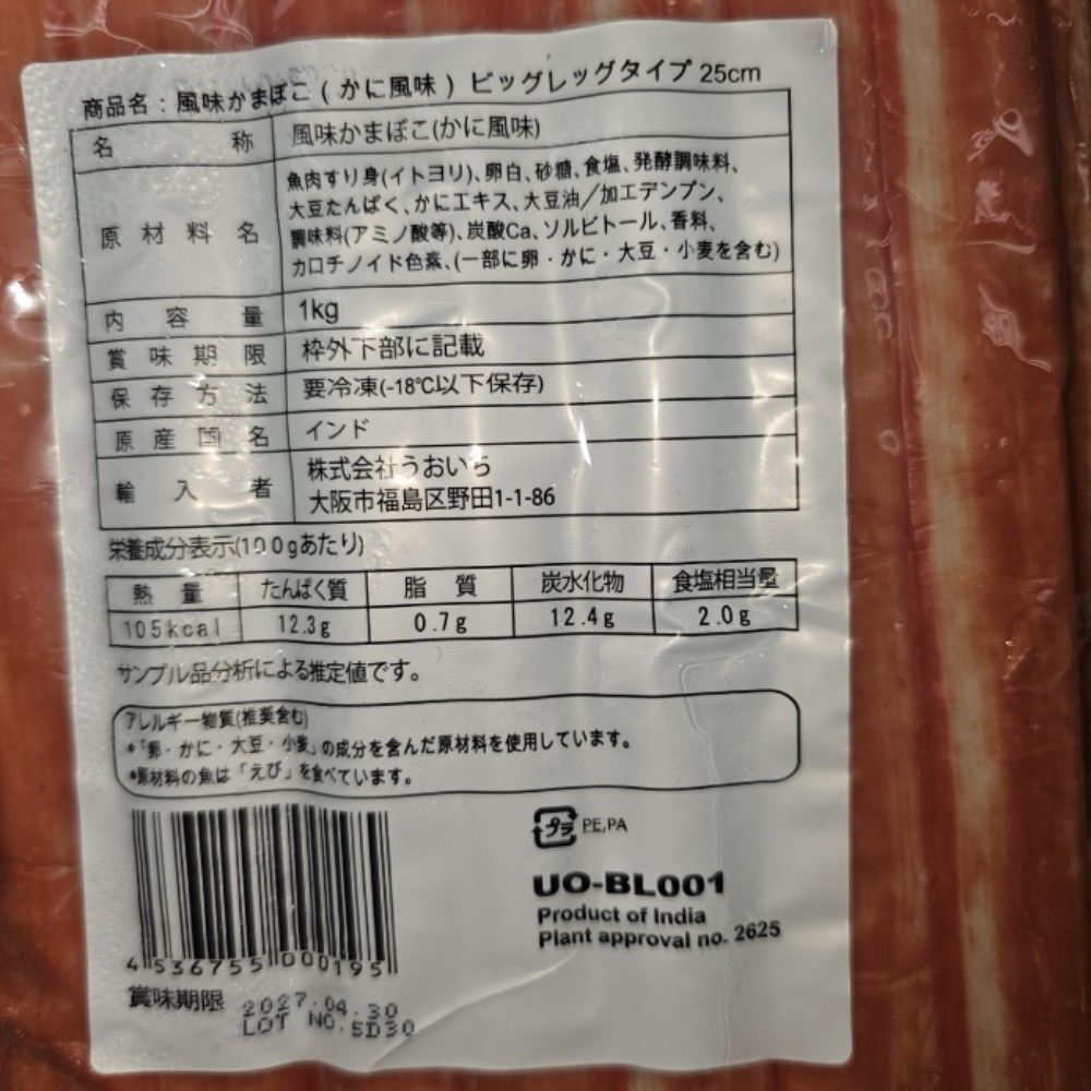 | 商品名 | 冷凍かに蒲鉾 1kg