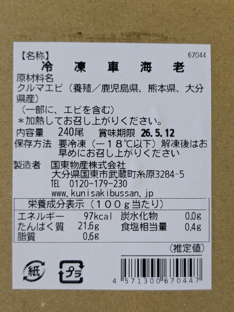 | 商品名 | 《国産・九州》車海老240尾 生冷凍 サイズ:約20g〜25g