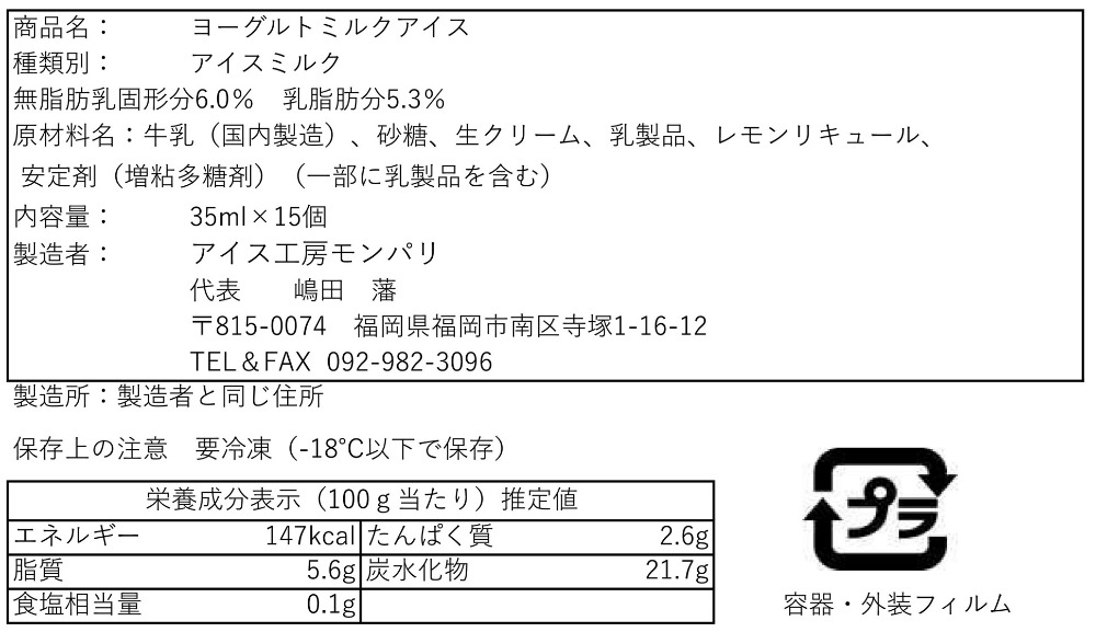 商品名 ヨーグルトミルクアイス ポーション #18(15個入)