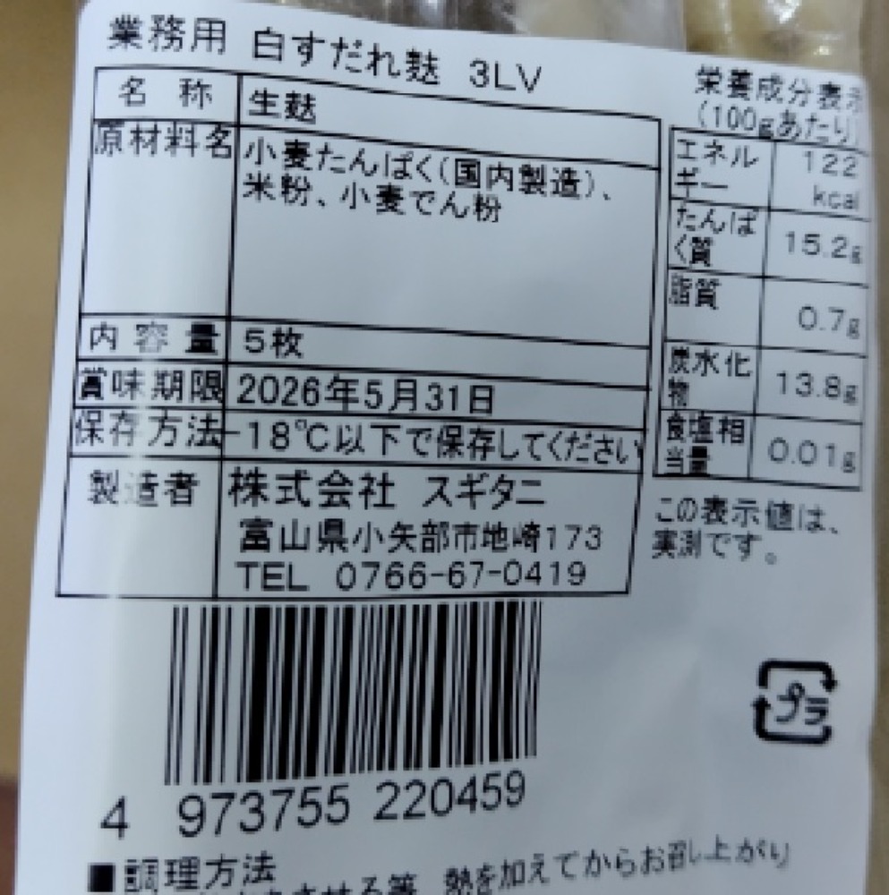 | 原材料、食品添加物 | 小麦たんぱく(国内製造)、米粉、小麦澱粉 |