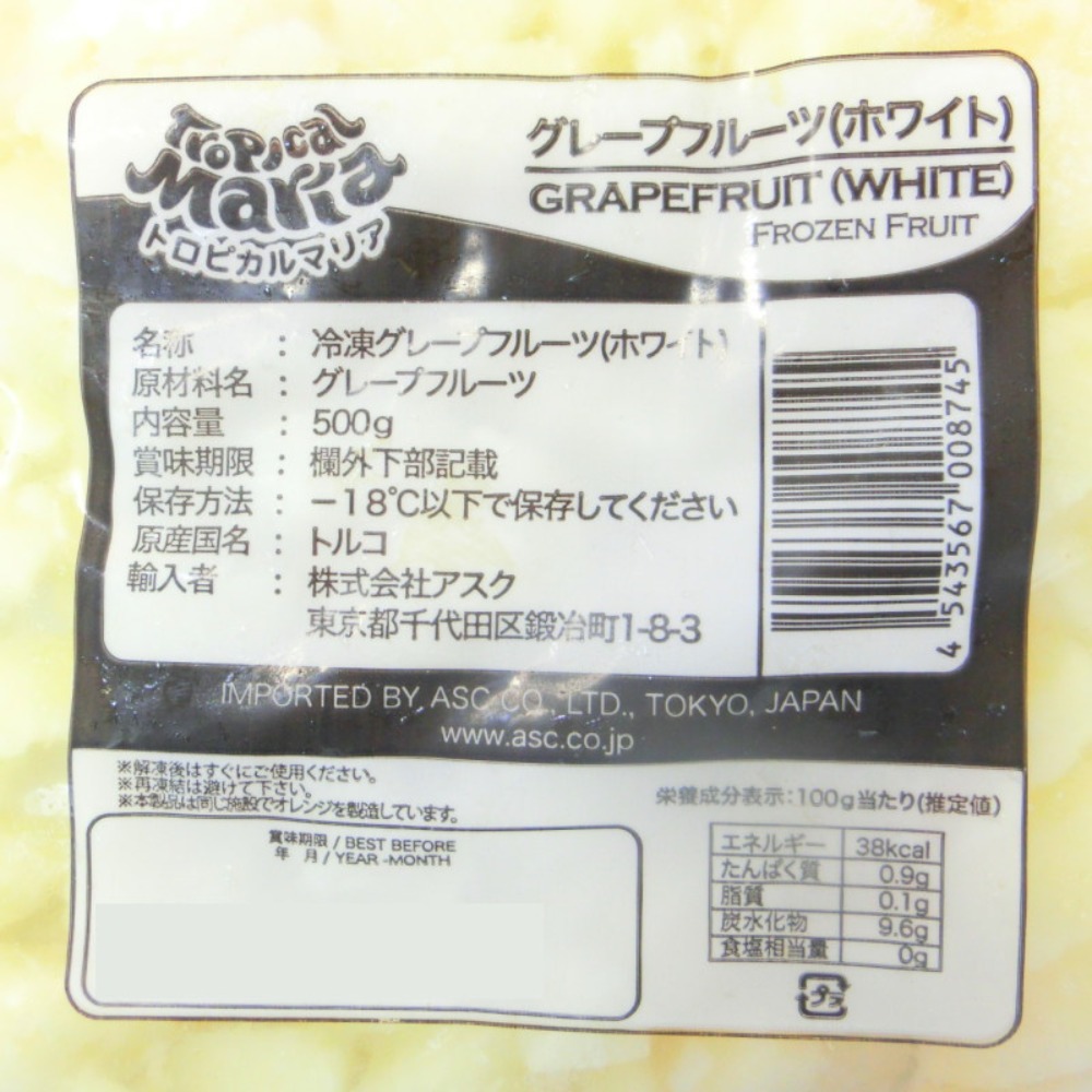 | 商品名 | グレープフルーツ ホワイト 皮むき済み 冷凍 1kg(500gx2)