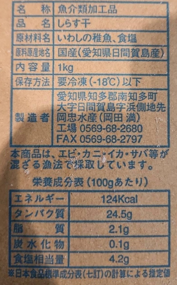 | 商品名 | 愛知県産 上物小筋しらす干し