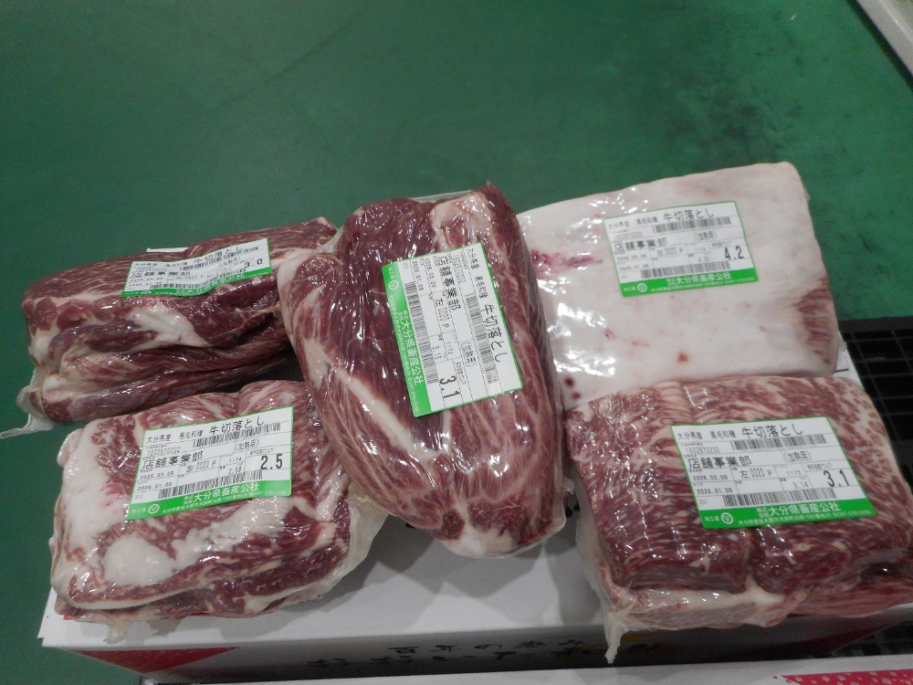 | 格付けA5等級の12番、ヌキのおおいた和牛切り落とし材のご案内になります。ウデ、モモ、ブリスケ、友バラの端材で作っております。1パック3kg前後の商品です。色々な料理にご使用出来ます。賞味期限が3月9日で在庫9パックです。ご利用をお待ちしております。 | |||||||