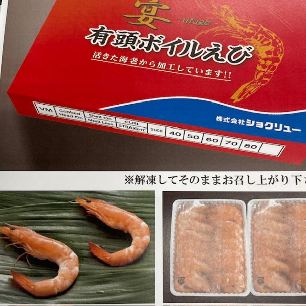 有頭ボイルエビ バナメイエビ 中ムキ カーブ 宴 60尾