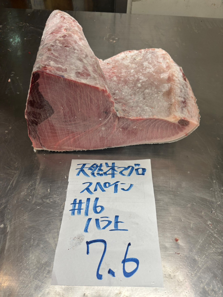 #16-1225天然本鮪ハラ上7.6kg・色と脂良し・身割れの可能性あり