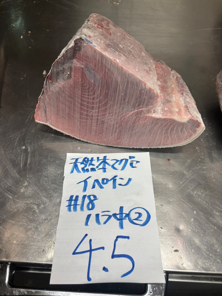 #18-1225天然本鮪ハラ中4.5kg・色と脂良し・身割れの可能性あり