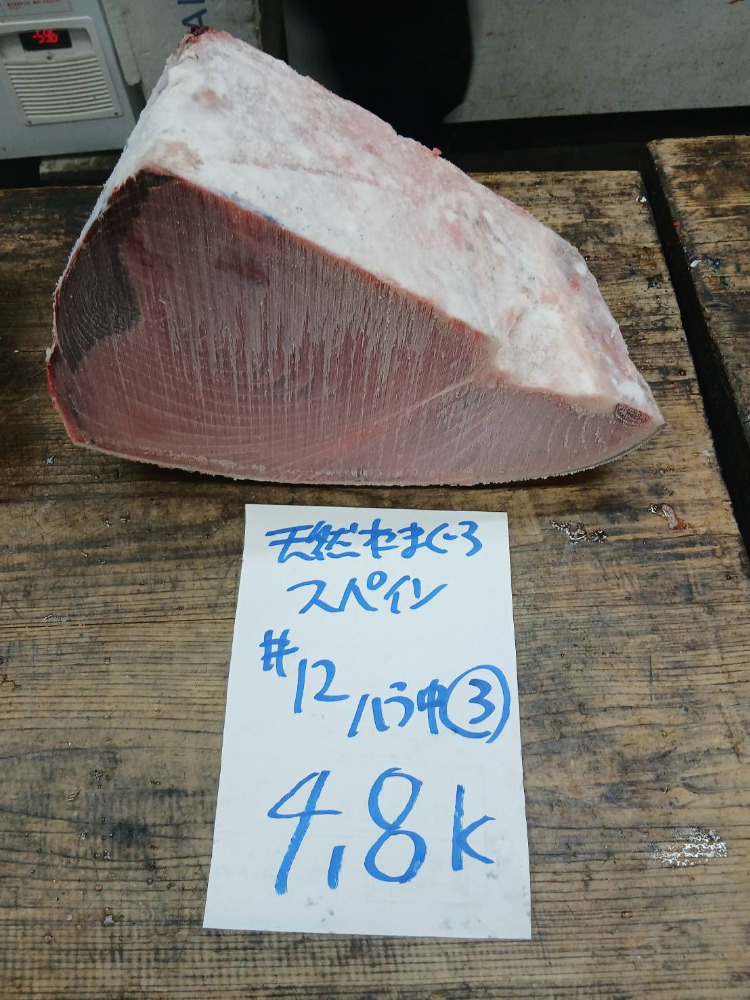 #12-0105天然本鮪ハラ中4.8kg・色と脂良し・身割れの可能性あり
