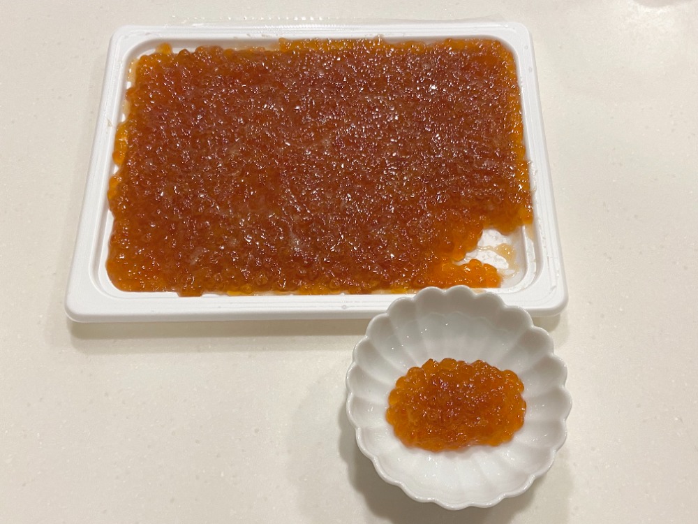 | 新鮮なイクラを贅沢に醤油漬けにし、旨味を凝縮しました。口の中で広がる豊かな風味と滑らかな食感は、特別なひとときを演出します。冷凍保存でいつでも手軽に楽しめ、寿司ネタとしても最適です。写真は室内2時間、その後冷蔵庫で6時間解凍を進めた状態です。 |